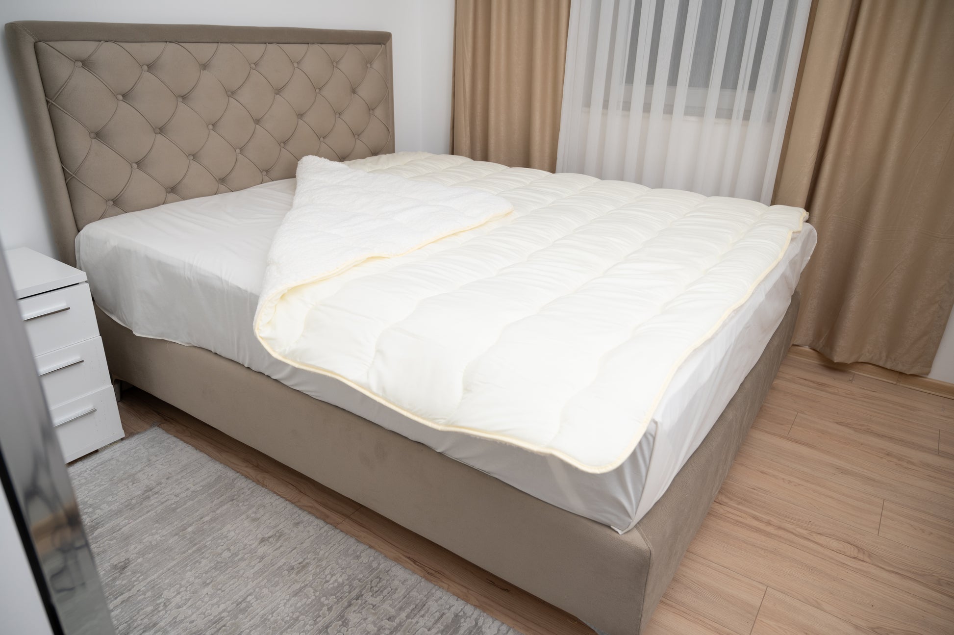 Bračni jorgan sa krznom – bež boja